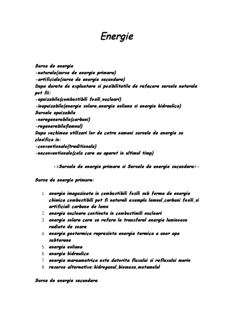 Energia eoliană, energia solară, energia nucleară,energia geotermală, energia din biomasă. Votre avis/livre d'or sur la droite de l'écran. Surse de energie neconvenţionale, în care se includ: